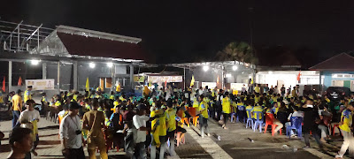 | Padat : Hampir Ribuan Massa Memadati Rumah Halaman Rumah Tokoh Masyarakat Desa Kubang Jaya, Siak Hulu. |